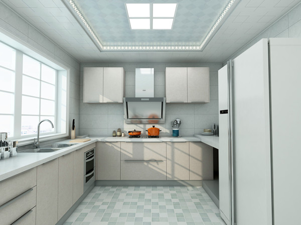 厨房吊顶:造型干净,简约清新,毫无拘束之感,可以包纳生活的琐碎,纯朴且丰厚。