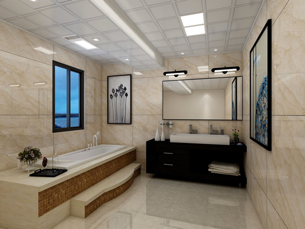 卫浴吊顶: 布局以“简约、舒适、生活化”为宗旨,有心的是在台阶部分同样与吊顶的错层形成了一个呼应,上方的灯还可以满足我们台阶部分的照明需求,丰富了空间故事感。